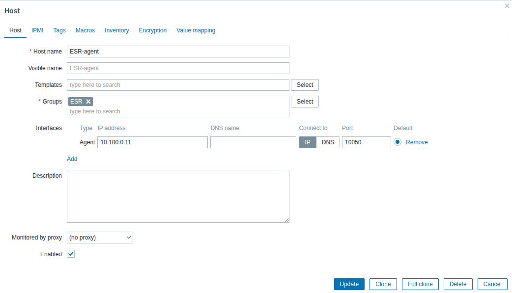 Укажем IP-адрес коллектора: