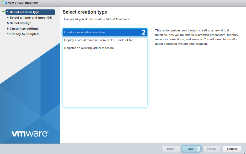 Шаг 2. Выберите "Create a new virtual machine" и нажмите "Next":