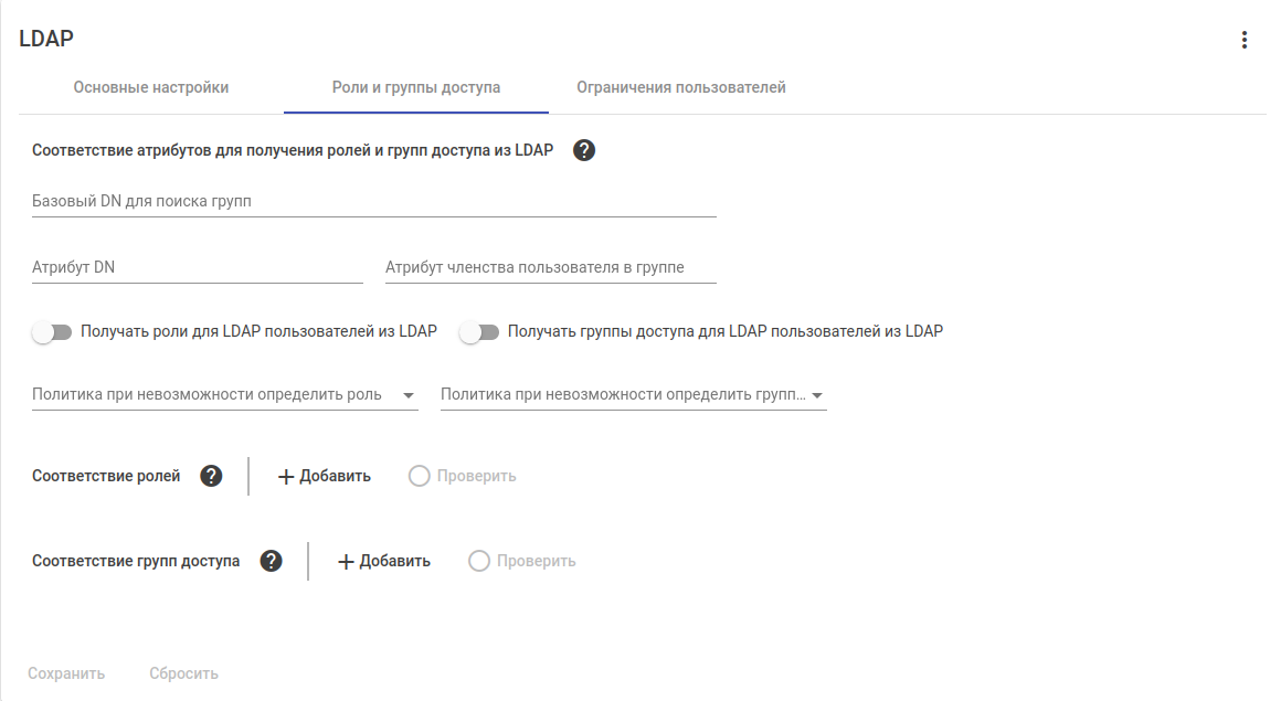 Настройка соответствия атрибутов для получения ролей и групп доступа из LDAP