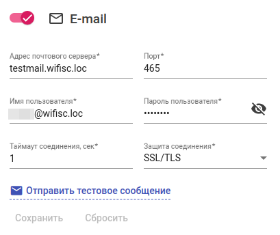 Для проверки корректности настроек нажмите на ссылку "Отправить тестовое сообщение", после чего на указанный e-mail будет отправлено тестовое сообщение.