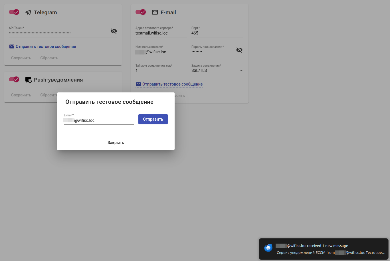 - Настроить подключение к серверу исходящей почты на странице "Настройки" → "Уведомления";