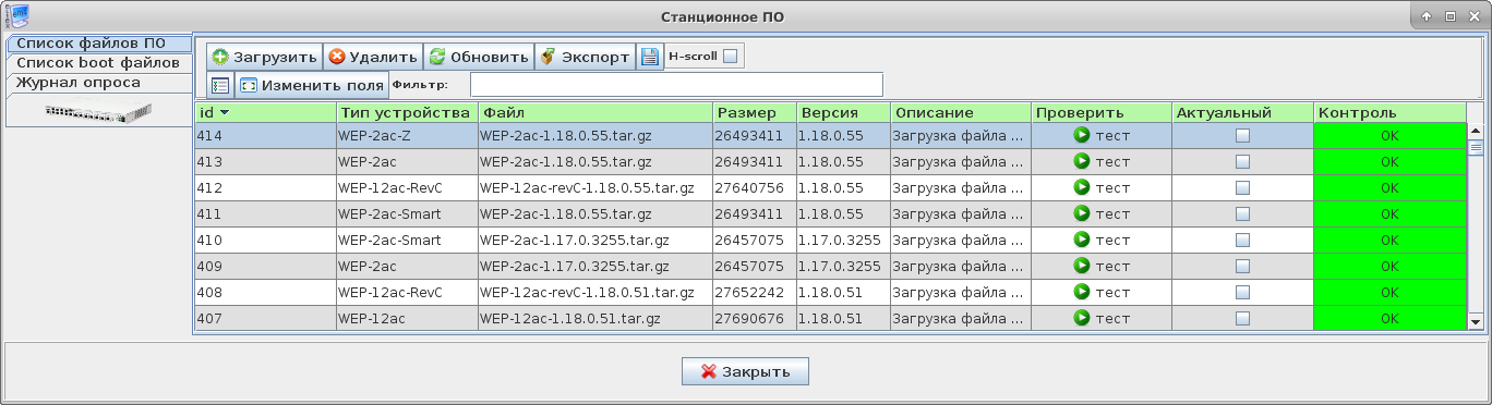 Журналирование для каждой даты ведётся в отдельных файлах, ротация производится согласно общим настройкам SoftWLC (настройки монитора архивирования и очистки журналов).