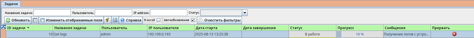 После настройки всех параметров необходимо нажать кнопку принять, после чего будет запущен процесс записи логов. Прогресс будет отображаться на панели задач.