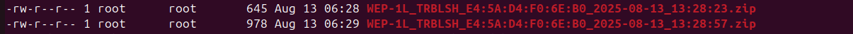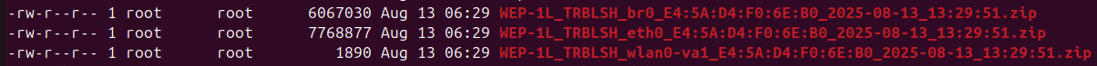 Архивы в данной директории записываются с именем в формате: имя устройства в дереве + MAC-адрес + имя интерфейса + дата и время запуска скрипта.