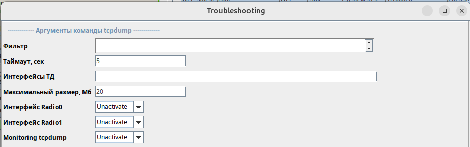 Интерфейсы ТД — в этом поле указываются интерфейсы, с которых будет сниматься дамп. Максимальное количество — 5 интерфейсов. При перечислении интерфейсов допускается использование запятой, точки с запятой или пробела.