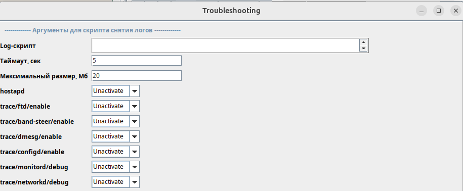 Позволяет удаленно запускать скрипт для снятия логов с указанием параметров, с последующей выгрузкой на сервер.