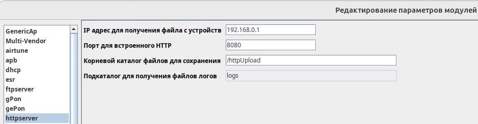 2) В разделе httpserver указать IP адрес для получения файла с утройств - IP сервера с SoftWLC