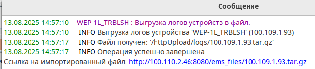 Перед выгрузкой логов необходимо предварительно произвести настройку http сервера из EMS:
