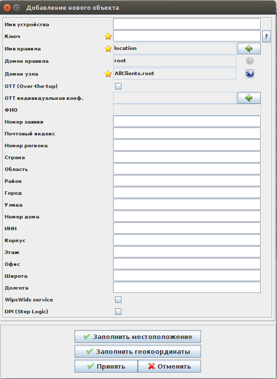 • групповые - по LOCATION, PARENT, IP RANGE, IP MASK, OTT DEFAULT, т.к. одна такая привязка может быть использована для инициализации многих ТД.