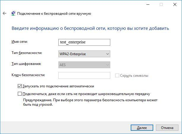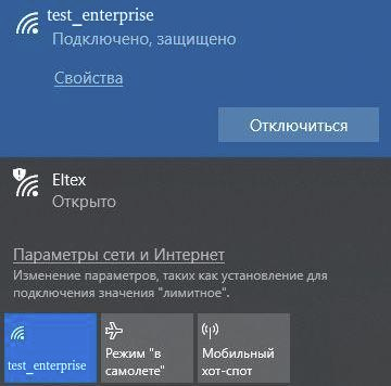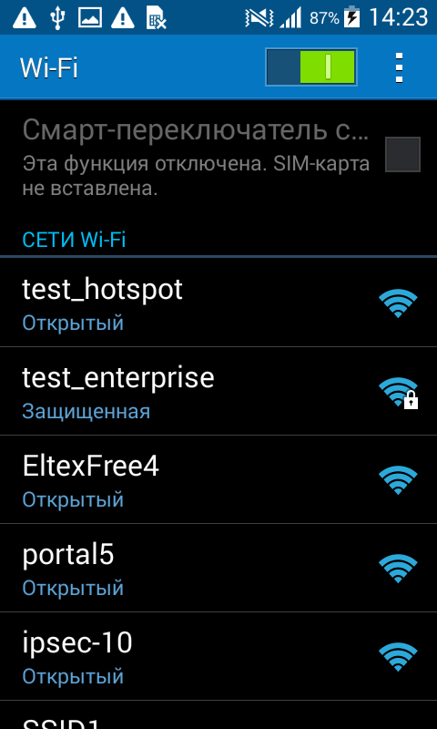 В меню Wi-Fi найдите созданный ранее SSID test_enterprise