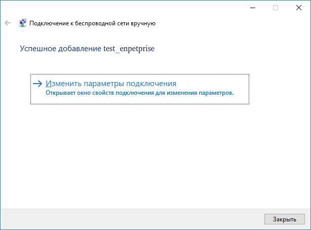 Сеть успешно добавлена. Переходим к настройке параметров подключения.