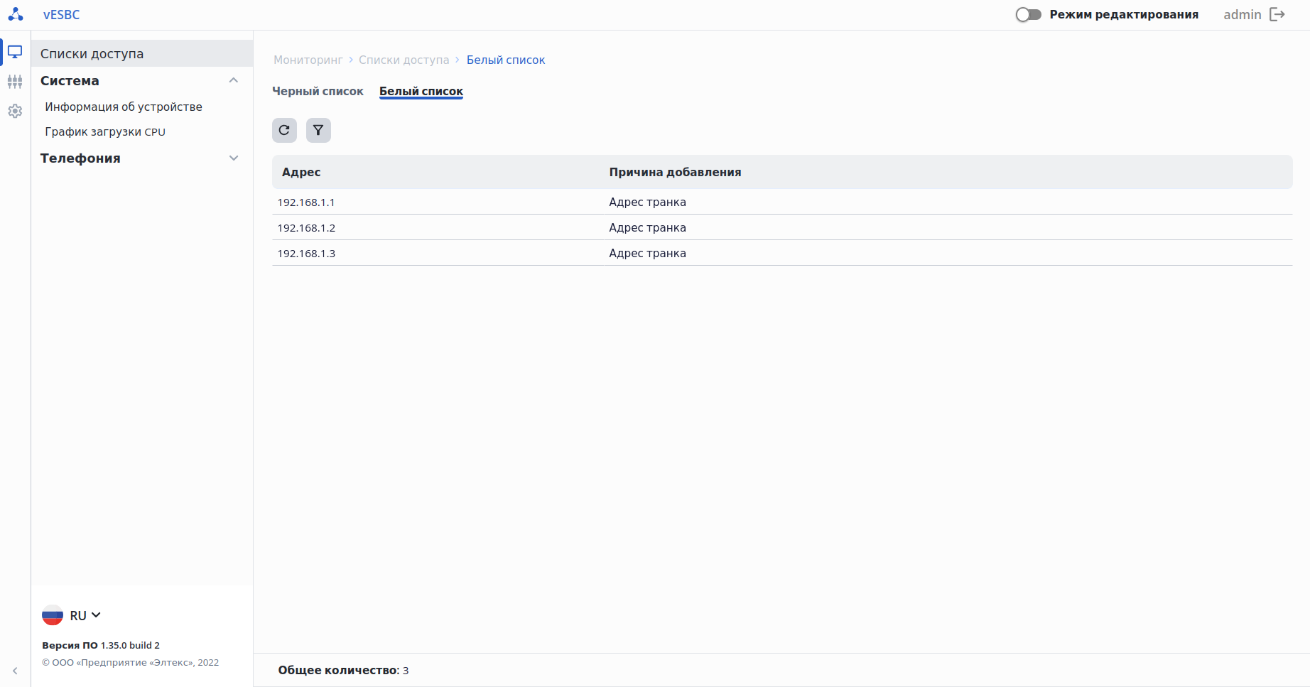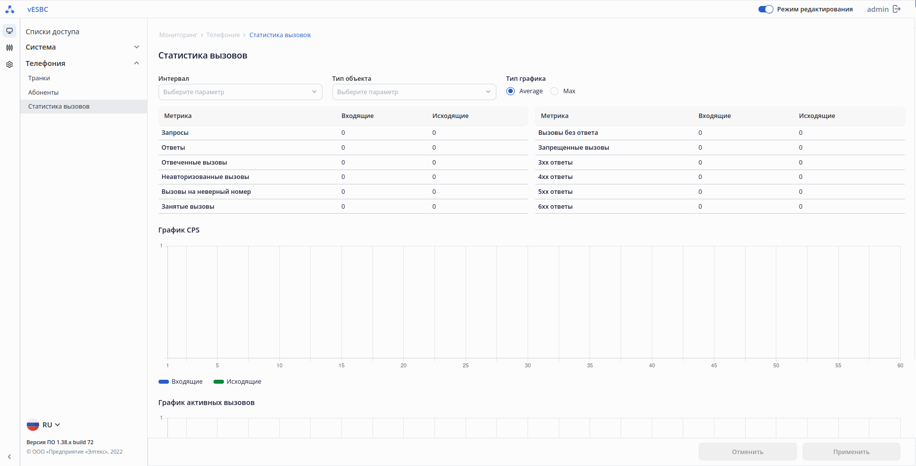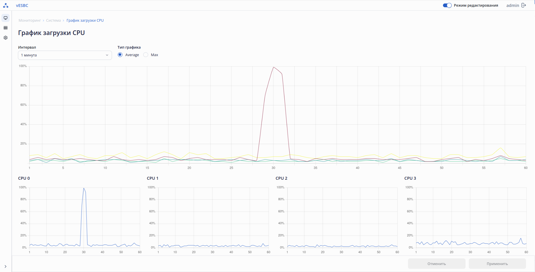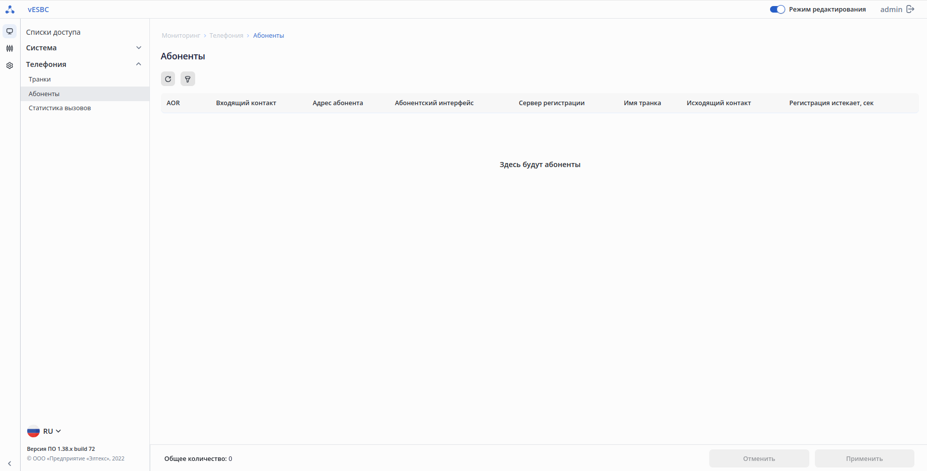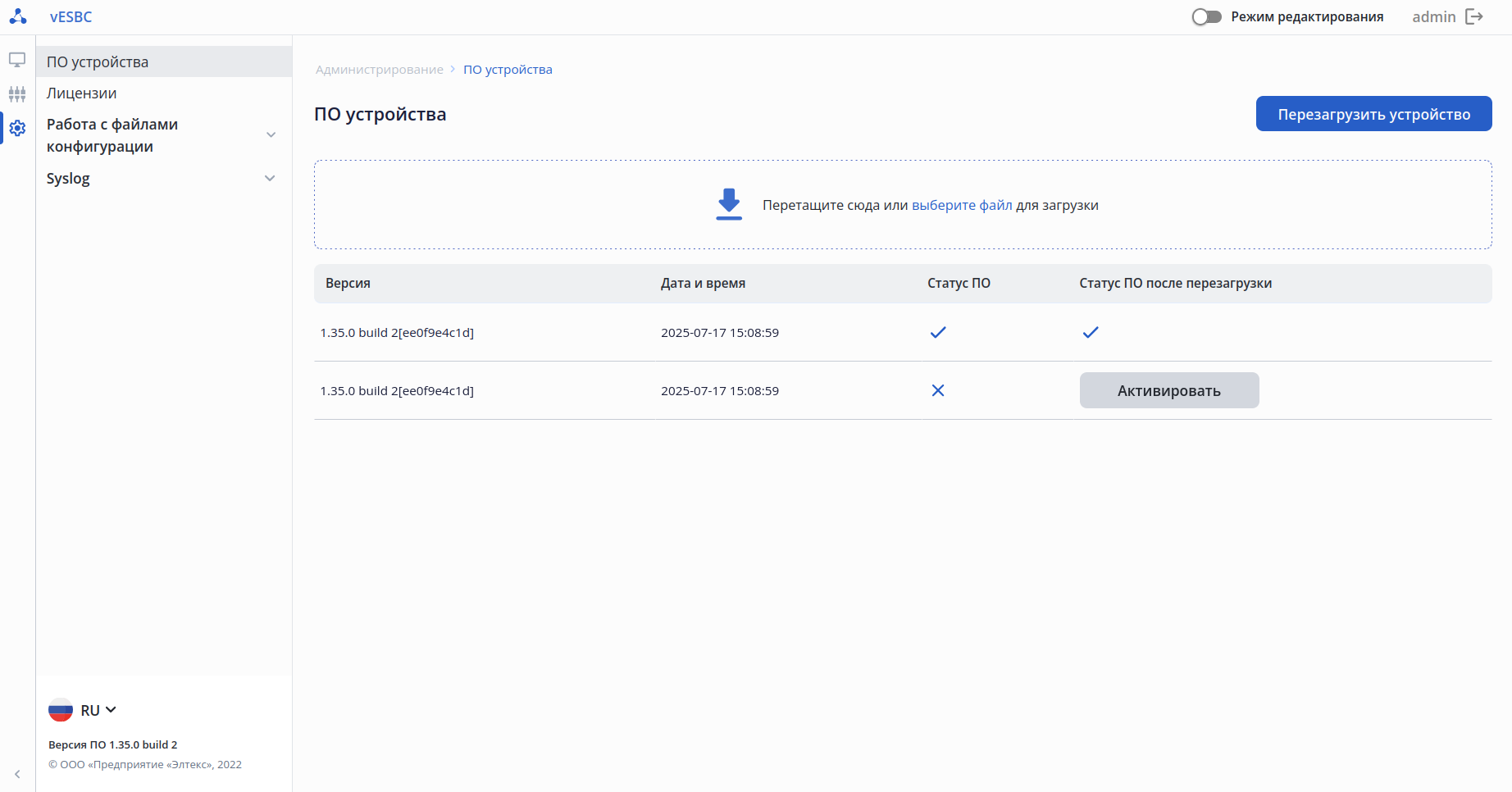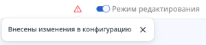 Для внесения изменений в конфигурацию необходимо включить режим редактирования переключателем на верхней панели страницы, по умолчанию данный режим отключен. После включения режима редактирования станет доступно изменение параметров.