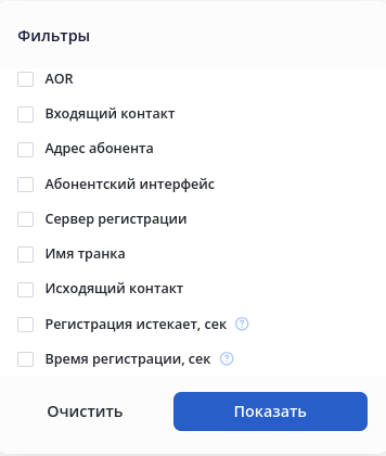 • Количество ошибок – количество накопленных ошибок у заблокированного атрибута (AOR/UA);