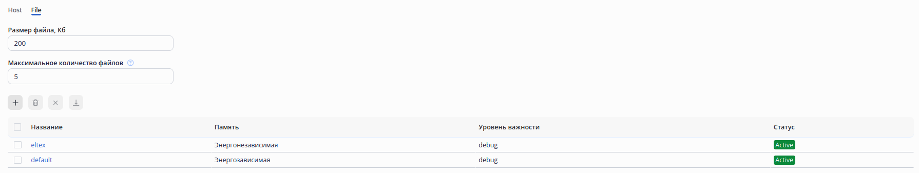 • Название – название создаваемых файлов  в локальном хранилище. При ротации файлы переименовываются из "file_name" в "file_name.n", где n – "1,2,3,4,..."