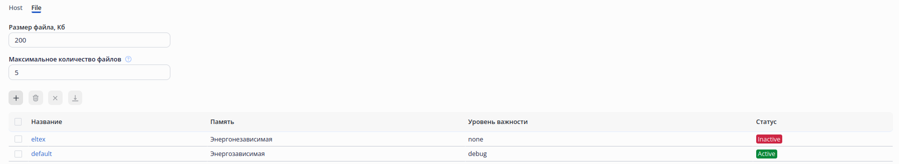 Для создания новой настройки записи в файл используйте кнопку «Создать syslog-файл».