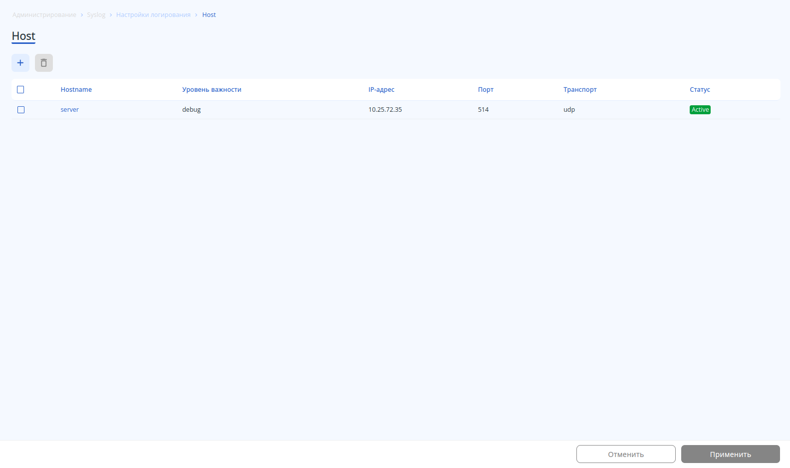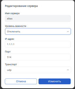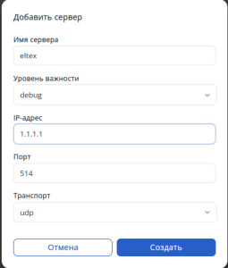 Для создания нового сервера используйте кнопку «Создать syslog-сервер».