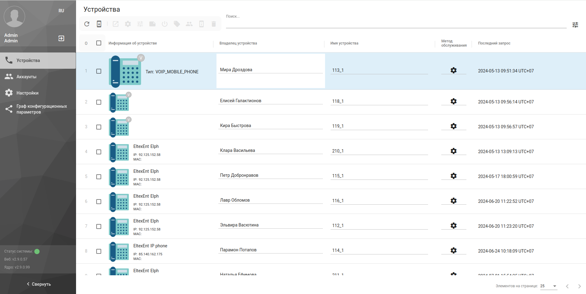 Рисунок 2 — страница устройств в AuP 2.8 и выше