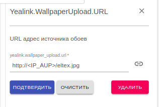 - Настраиваем конфигурацию Yealink.WallpaperUpload.URL, указываем ссылку в формате http://<aup_ip>/<имя нашего шаблона>