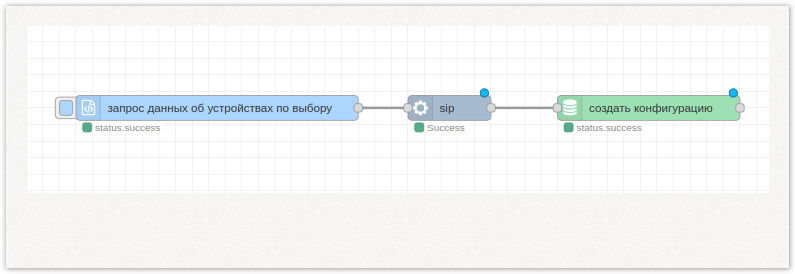 • В "Графе конфигурационных параметров" выбрать это добавленное устройство через блок "запрос данных об устройствах"