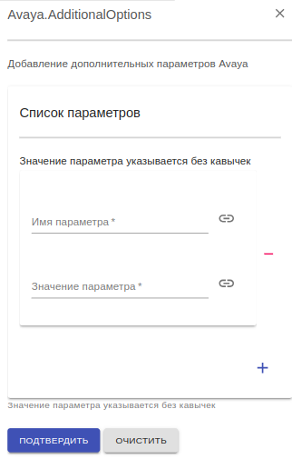 В "Графе конфигурационных параметров" в блоке "узел настроек" для изменения этих параметров необходимо выбрать Avaya.AdditionalOptions.