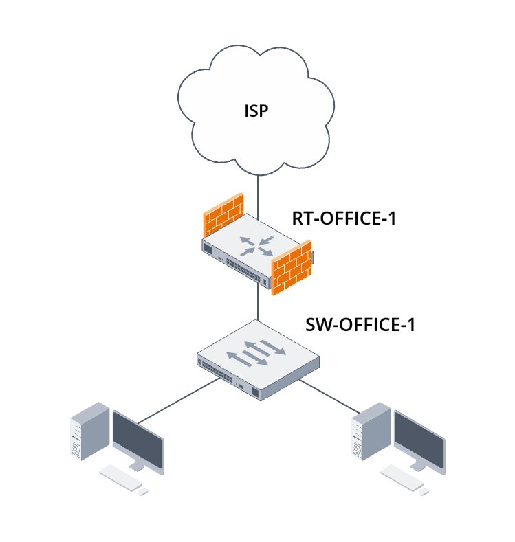 Рассмотрим пример подключения к облаку DMVPN небольшого офиса, в котором присутствует один интернет-провайдер, предоставляющий доступ в Интернет через белый статически-назначаемый IP-адрес: