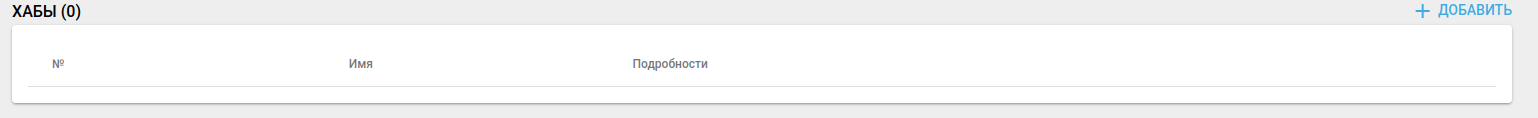 - В разделе Хабы нажмите кнопку . Откроется страница со списком хабов: