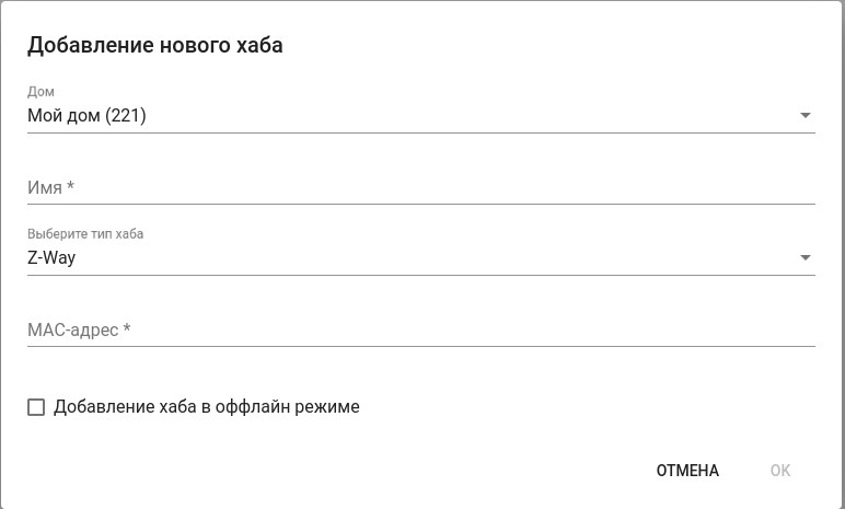 Добавление хаба или роутера (для устройств Z-Wave/Zigbee)