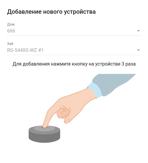 3. Чтобы устройство перешло в режим сопряжения с хабом, несколько раз нажмите на сервисную кнопку на корпусе устройства или внутри него (в зависимости от типа устройства). В данном примере нужно нажать сервисную кнопку на корпусе добавляемого устройства 3 раза.