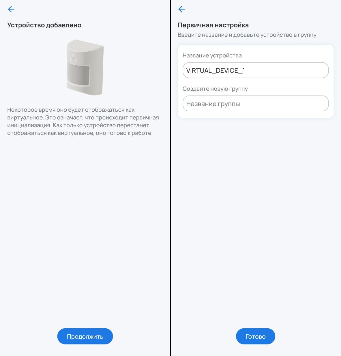 5. Устройство будет добавлено, и платформа создаст виртуальное устройство. Нажмите Готово.