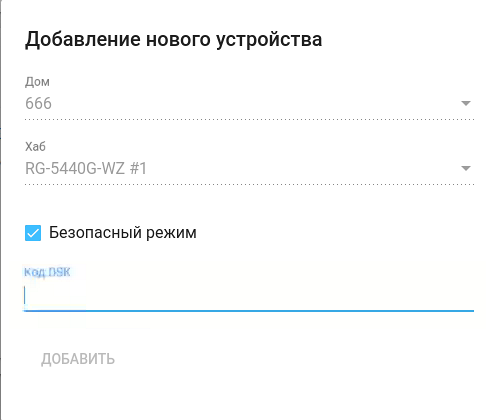 Помимо безопасного режима можно добавлять устройства в небезопасном режиме. В таком случае ввод кода DSK не требуется.