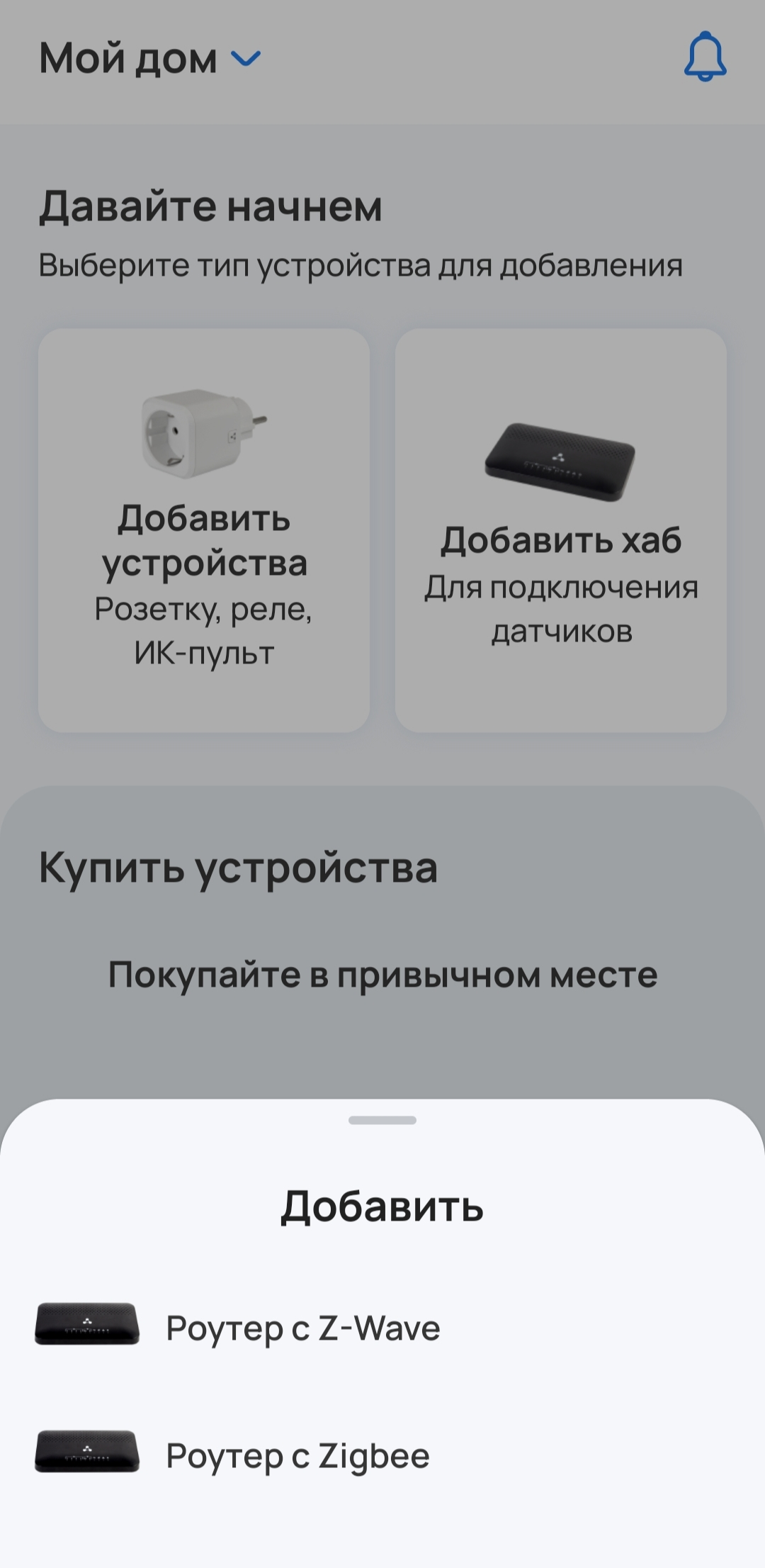 Для устройств Z-Wave/Zigbee сначала потребуется добавить хаб или роутер.
