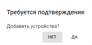 4. Нажмите . Система предложит сразу перейти на страницу Устройства для добавления к хабу устройств умного дома. Нажмите ДА, чтобы перейти к добавлению.