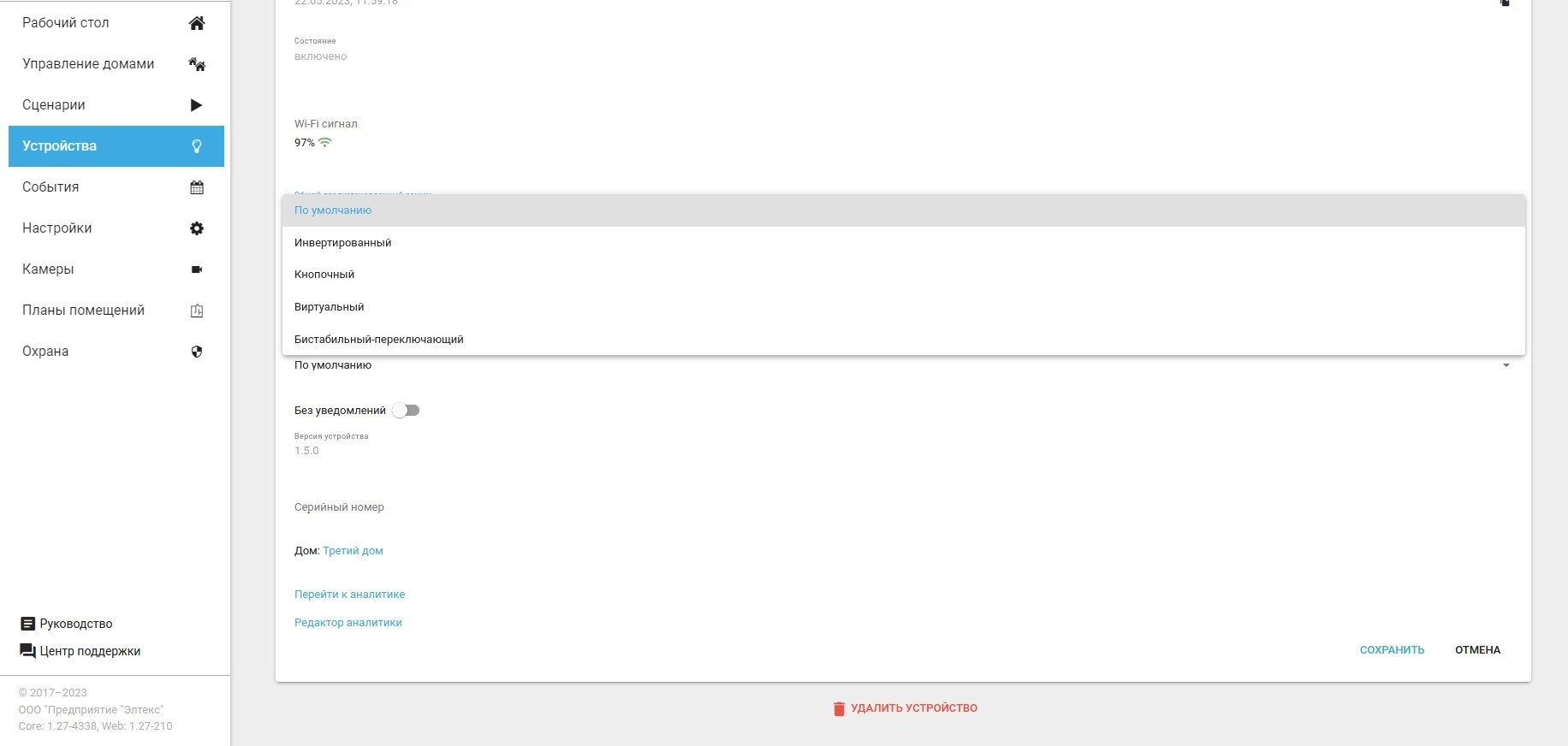 Для Wi-Fi реле SW-RLY01, SW-RLY02 можно дополнительно настраивать режимы работы с различными типами выключателей (каналов).