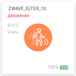 После отображения плитки устройства рекомендуется выполнить проверку его работы, а именно вызвать срабатывание основного параметра. Например, в случае датчика движения, проведите перед ним рукой, после чего проверьте изменение состояния устройства в платформе. Датчик дыма можно проверить нажатием на тестовую кнопку.