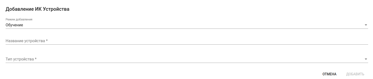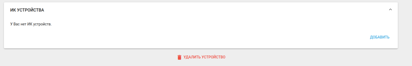В подразделе «ИК устройства» в нижней части карточки нажмите кнопку Добавить.