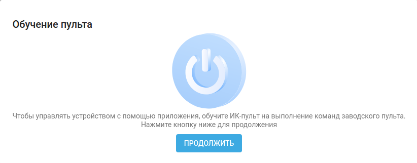 В открывшемся меню введите название устройства и выберите его тип из списка (телевизор, кондиционер и т. д.), режим добавления оставьте «Обучение».