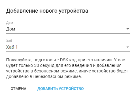 Помимо безопасного режима можно добавлять устройства в небезопасном режиме. В таком случае ввод кода DSK не требуется.