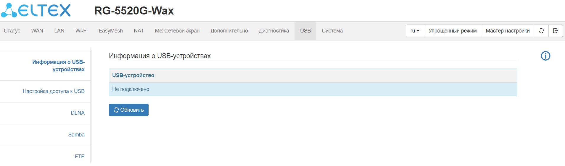 Информация о подключенных USB-устройствах доступна через данное подменю.