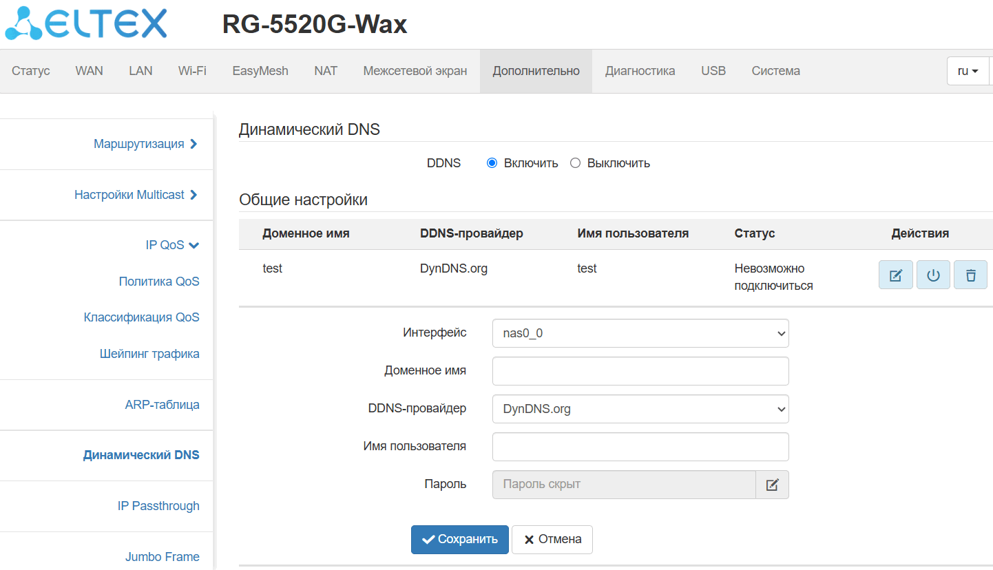 DDNS — активация услуги DDNS.