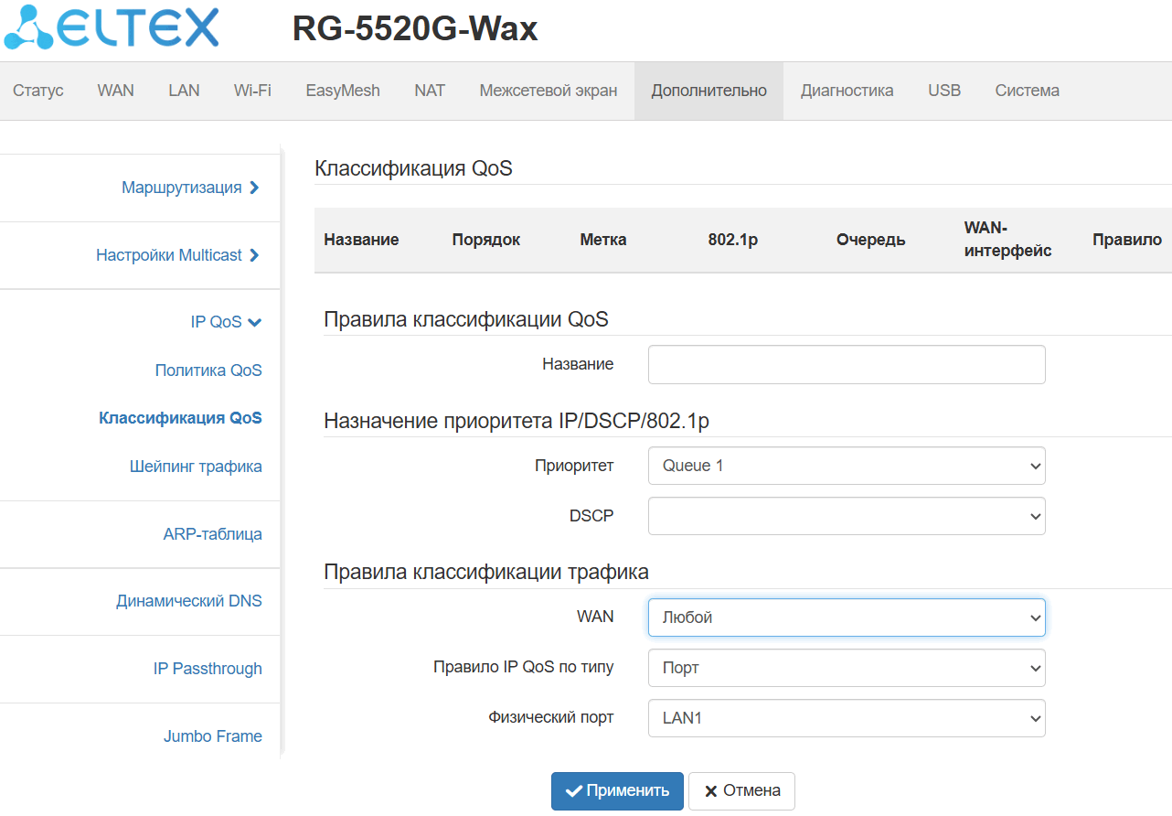 поддержка механизмов качества обслуживания QoS;