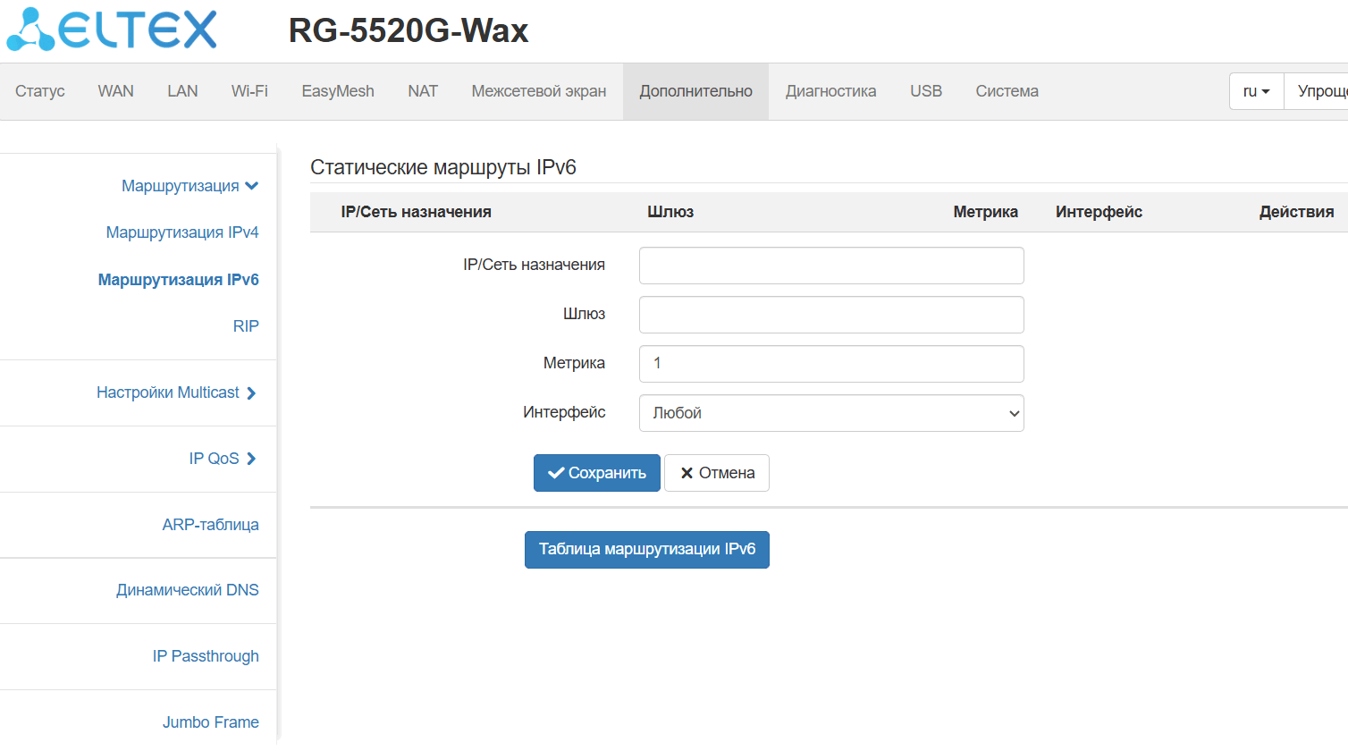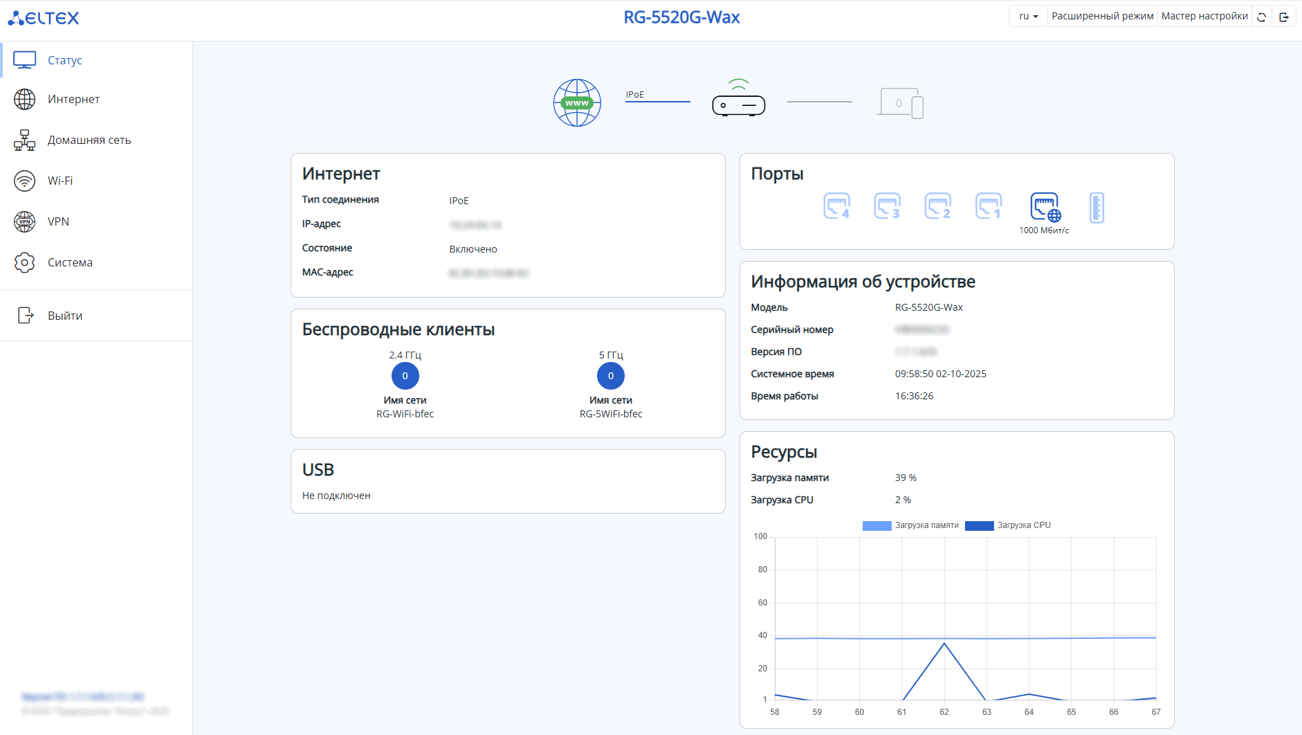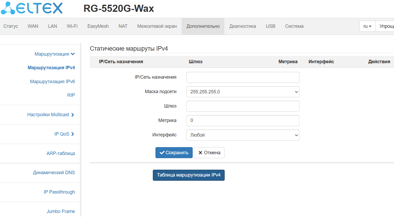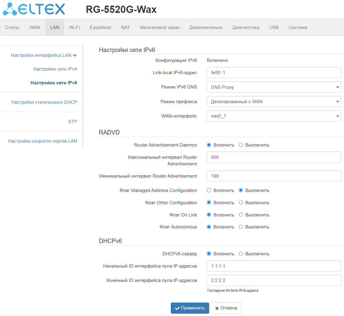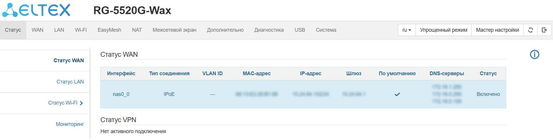 поддержкаMultiWAN (мультисервисная модель: раздельная настройка сетевых параметров для каждого сервиса: Internet, TR-069, IPTV);