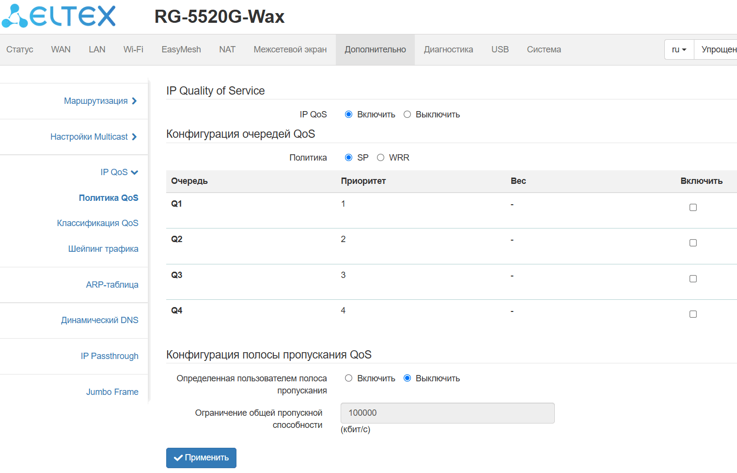 поддержка QoS;