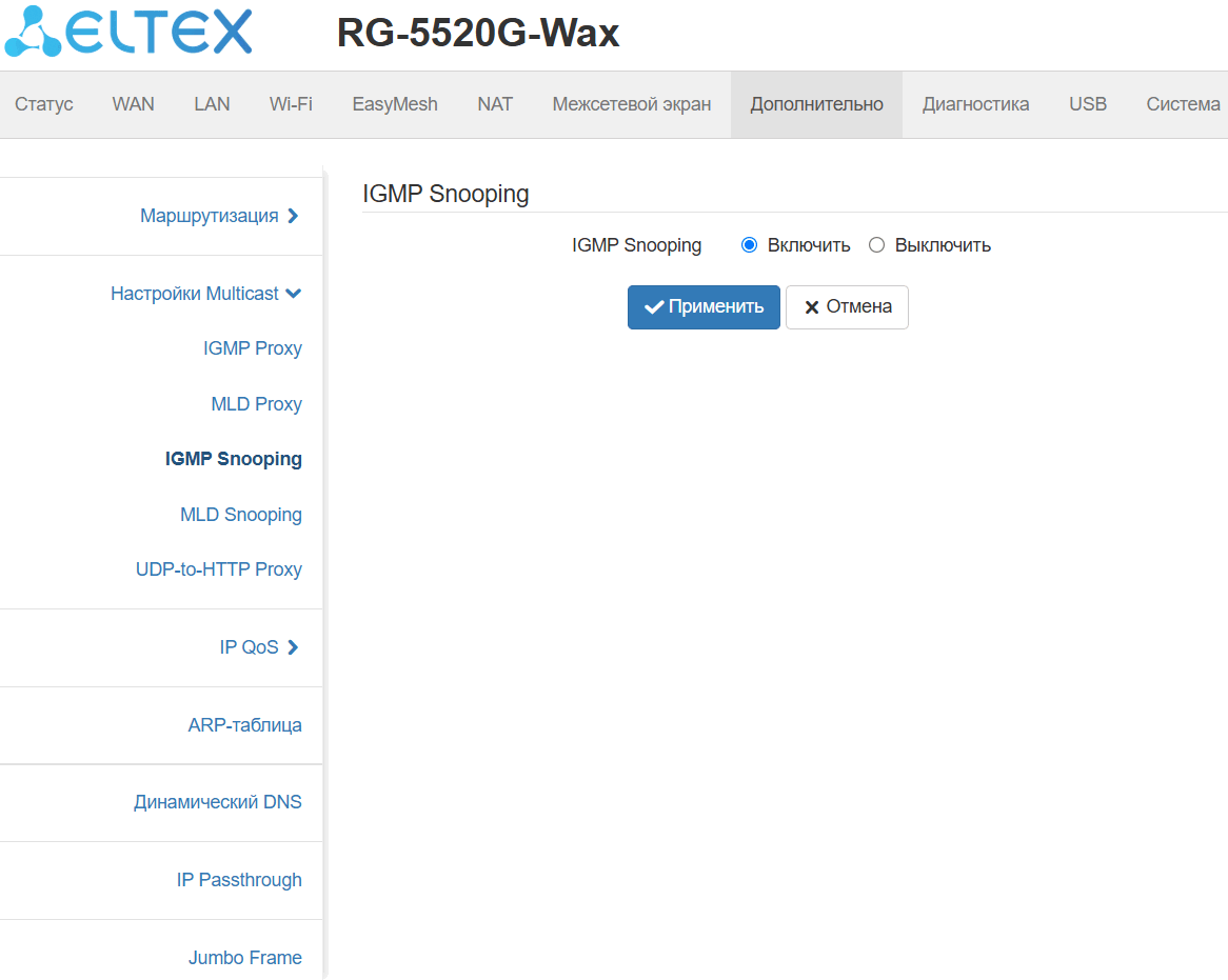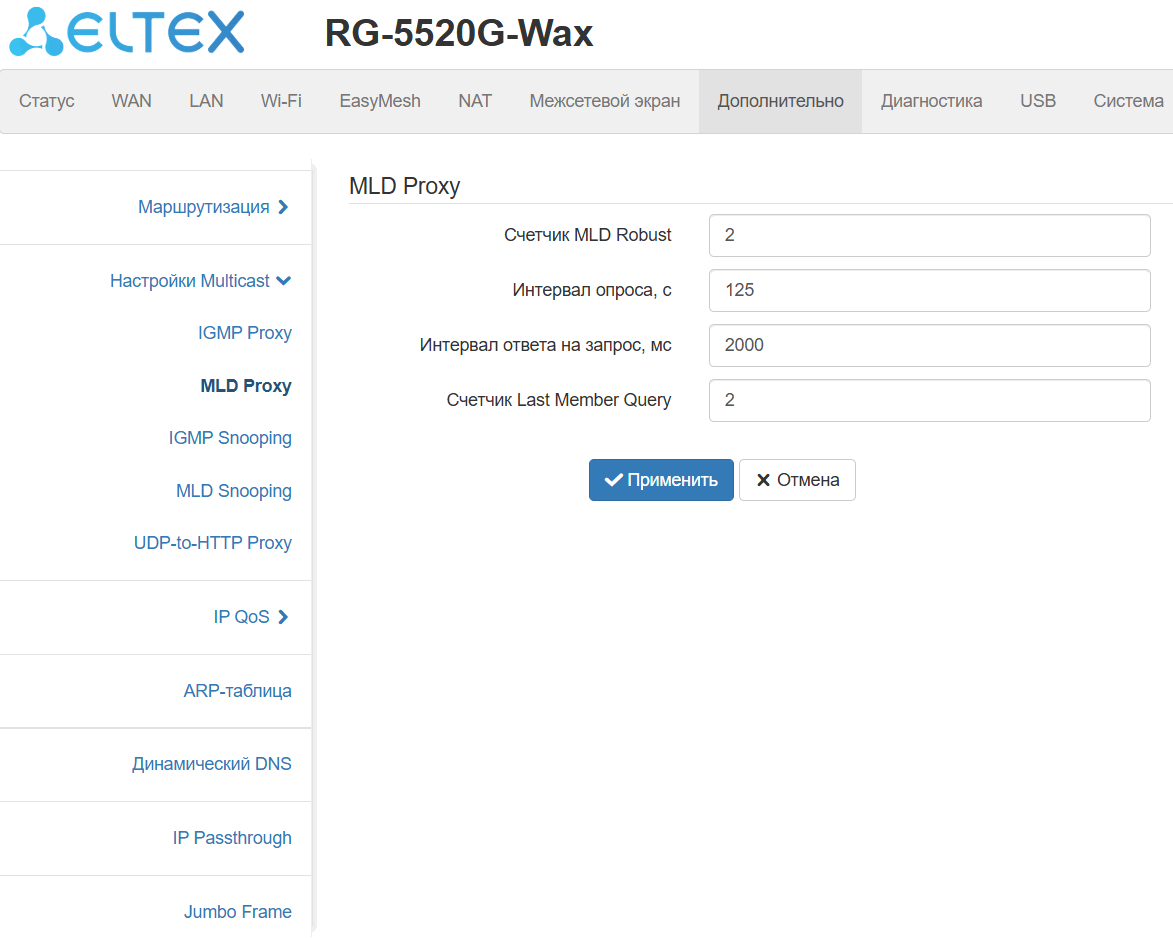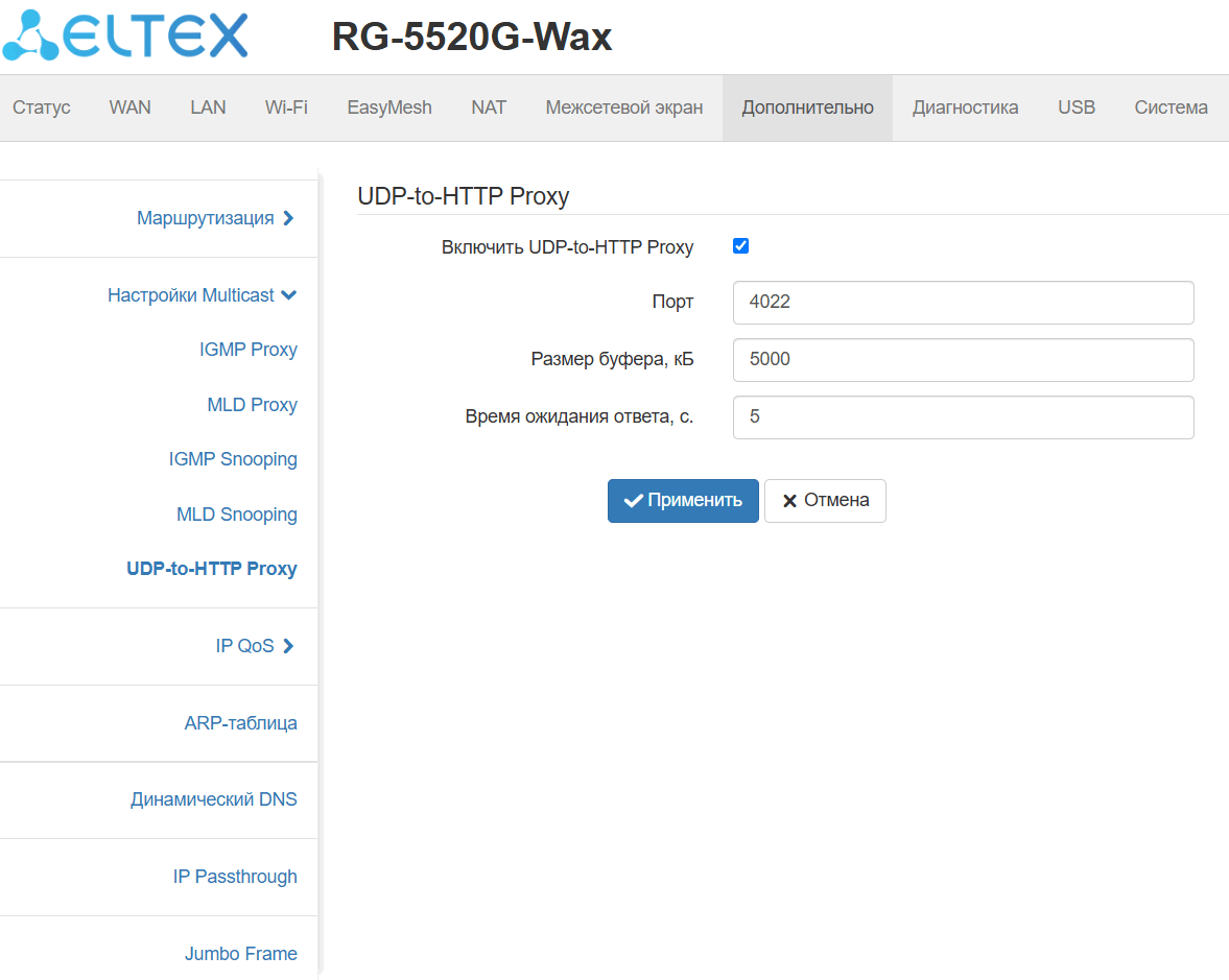 Поддержка функций IPTV (IGMP proxy, MLD proxy, UDP-to-HTTP Proxy);