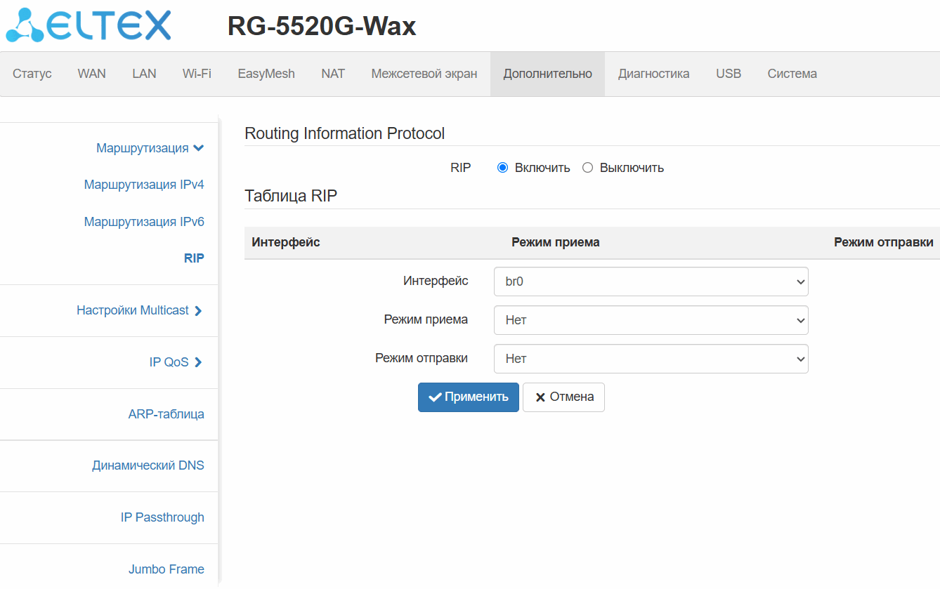 поддержка RIPv1, RIPv2;