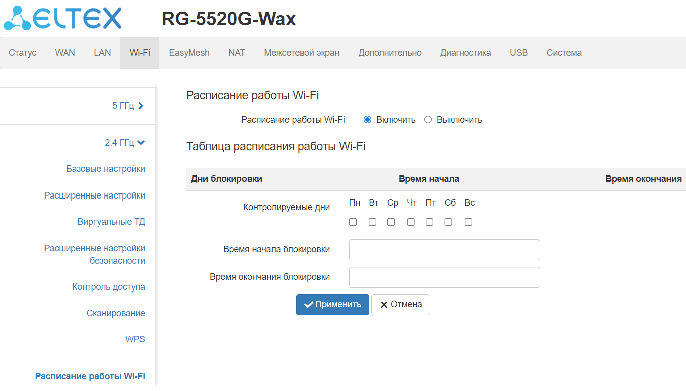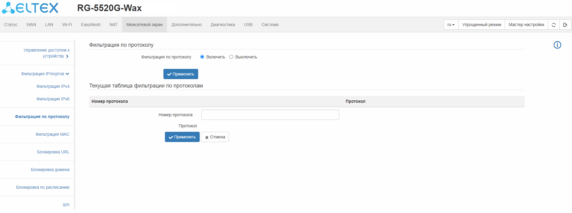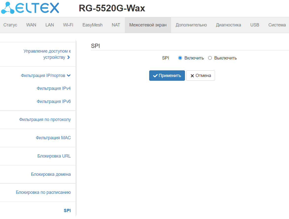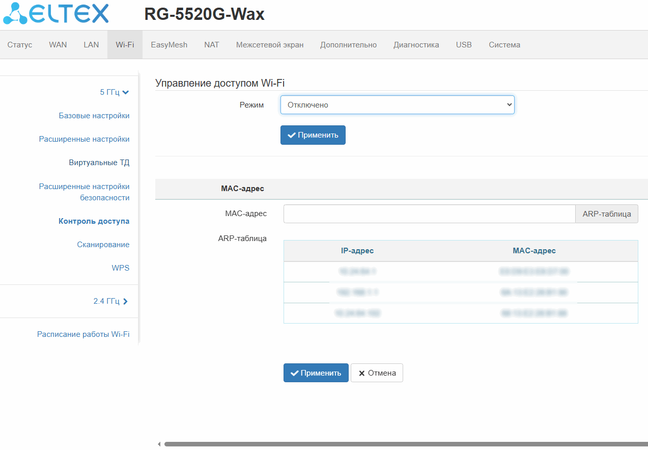 ограничение доступа к устройству через WAN и LAN;
