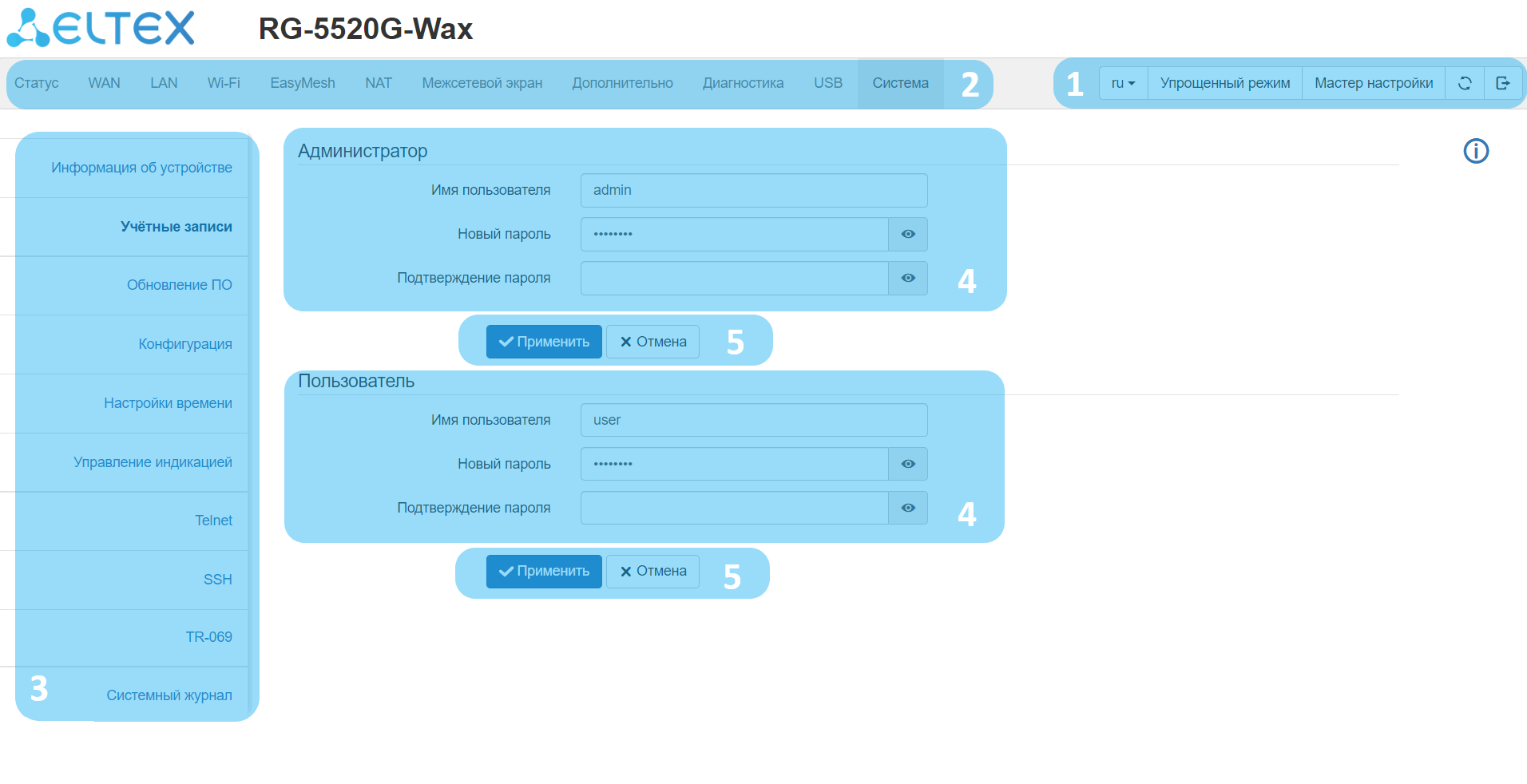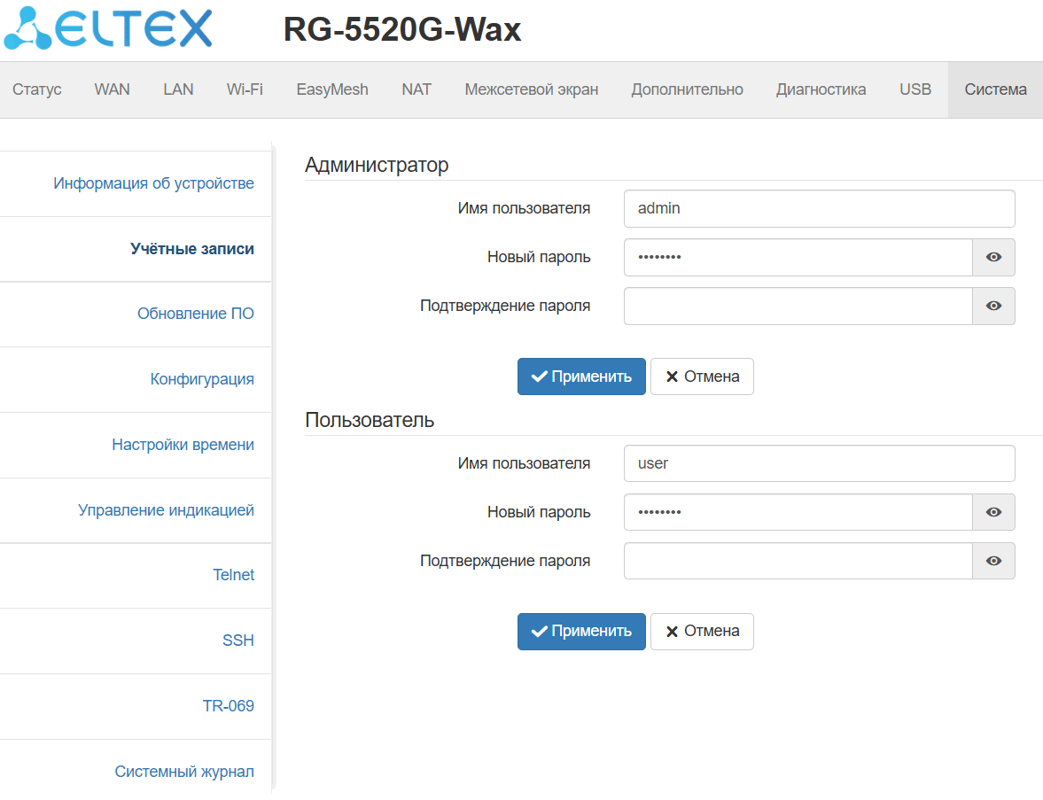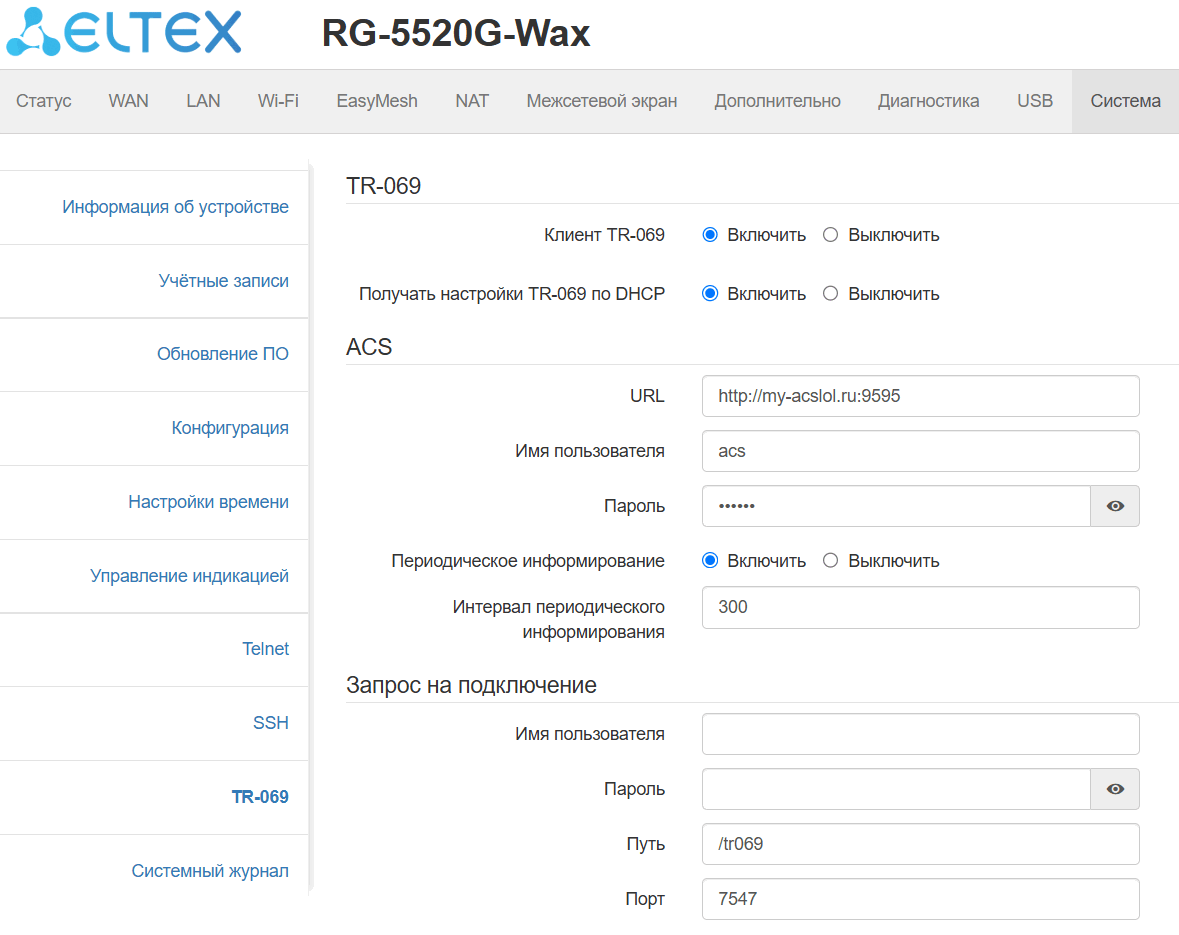 Подменю «TR-069» доступно только под учетной записью Администратор.