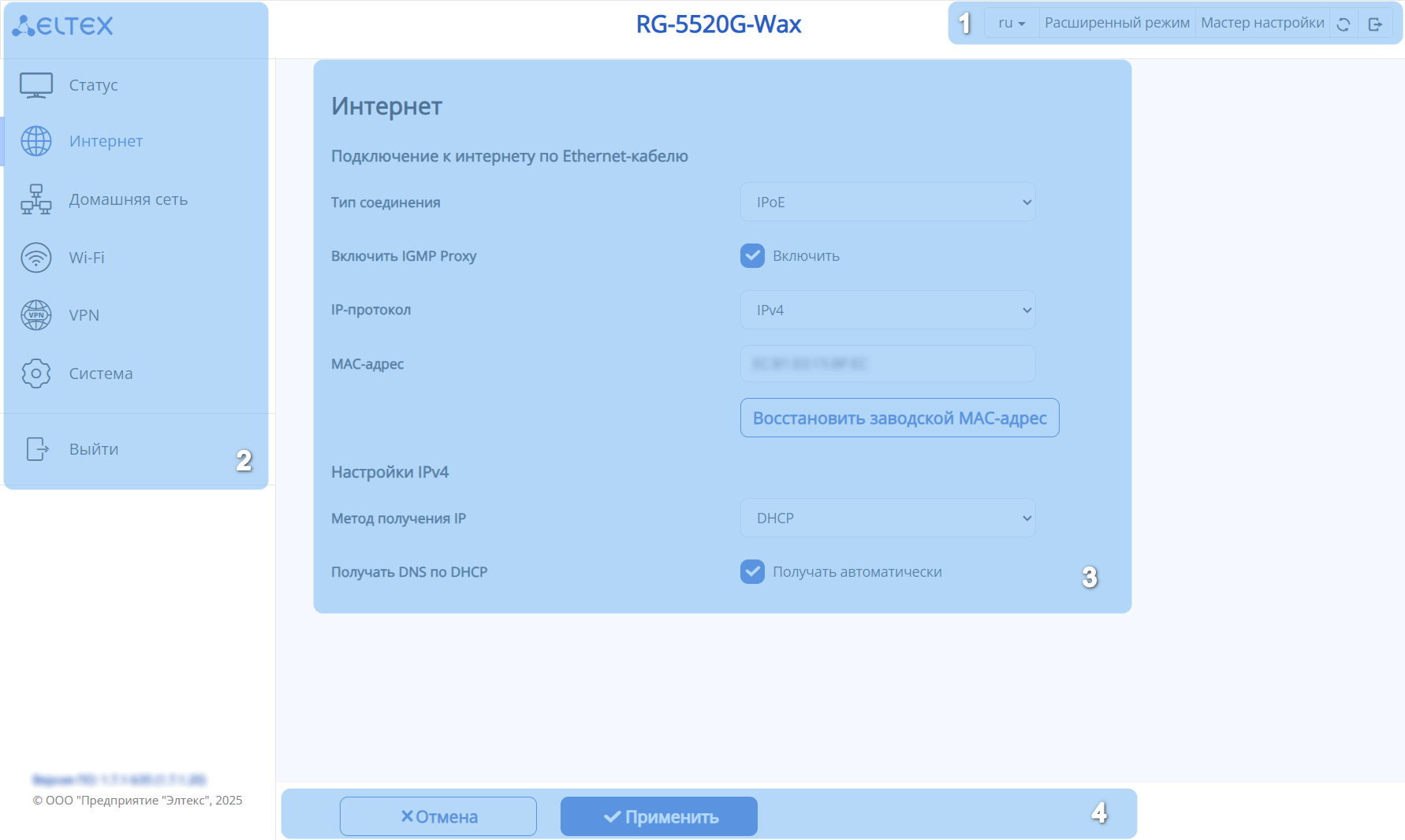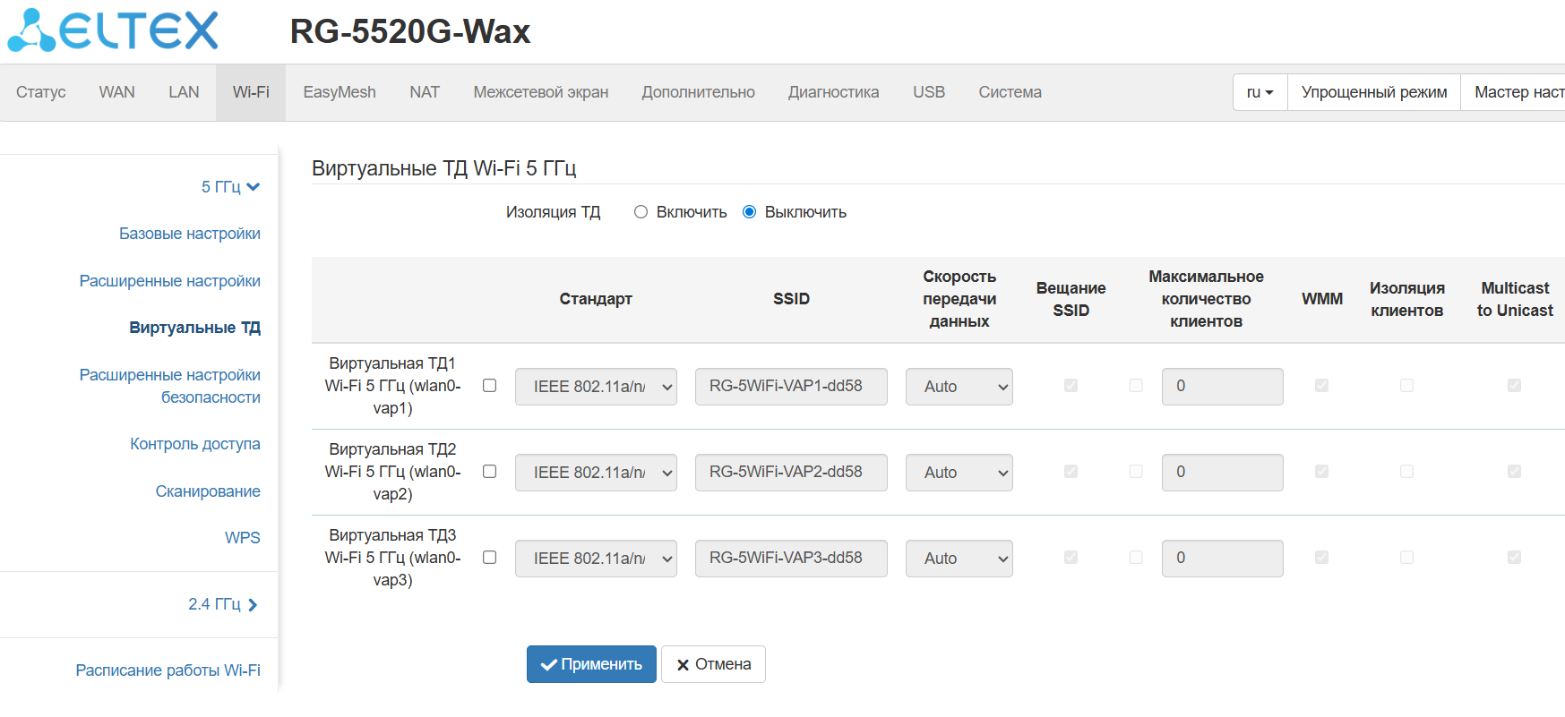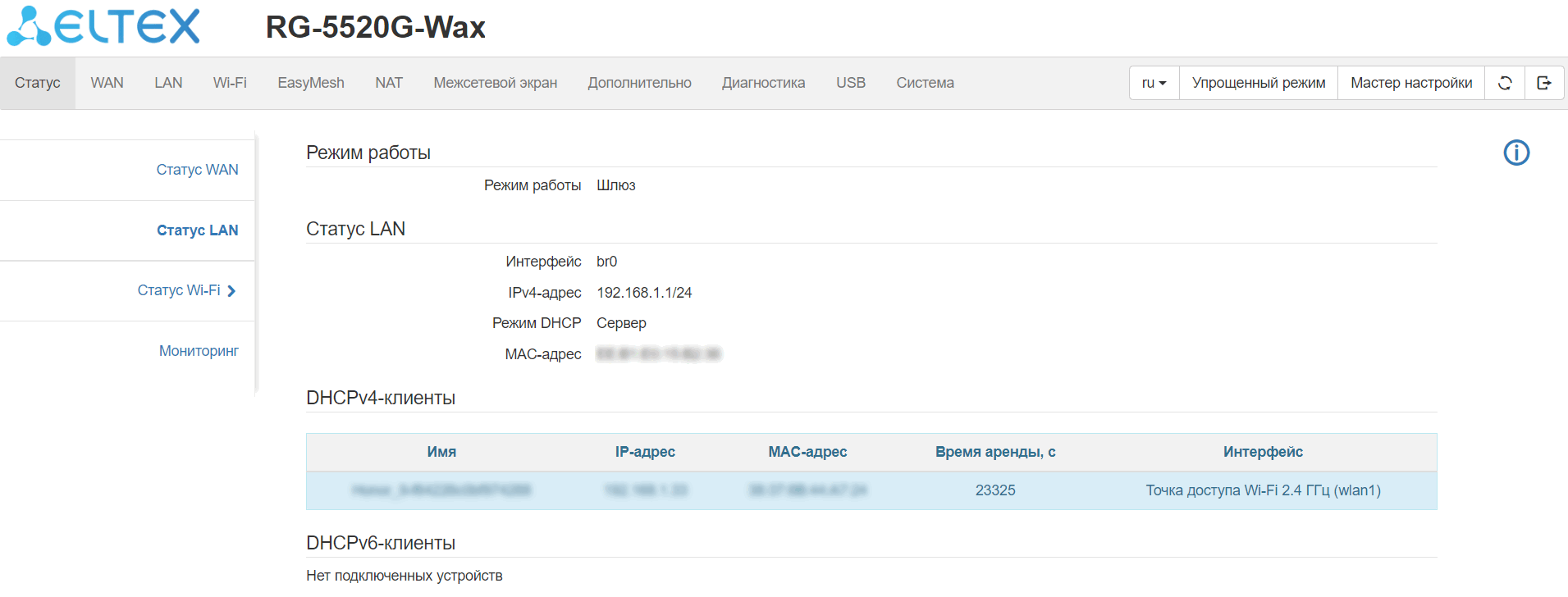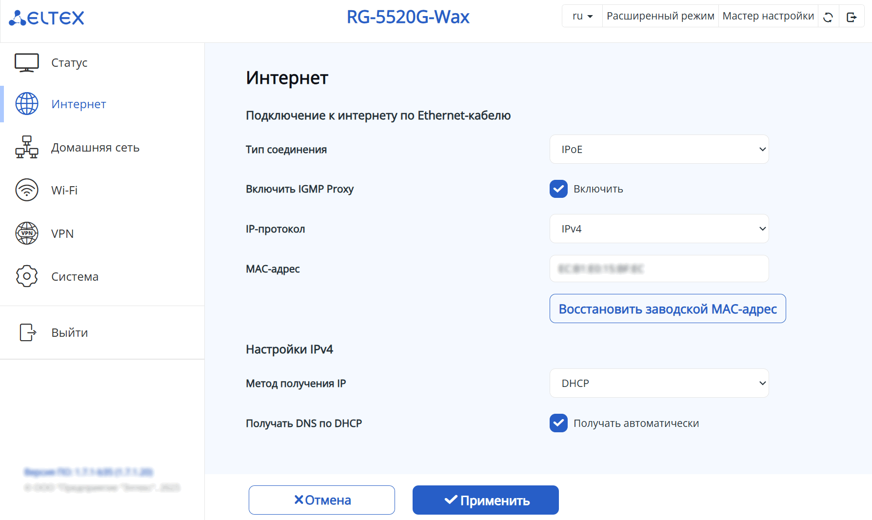 клонирование MAC-адреса на WAN-интерфейсе;