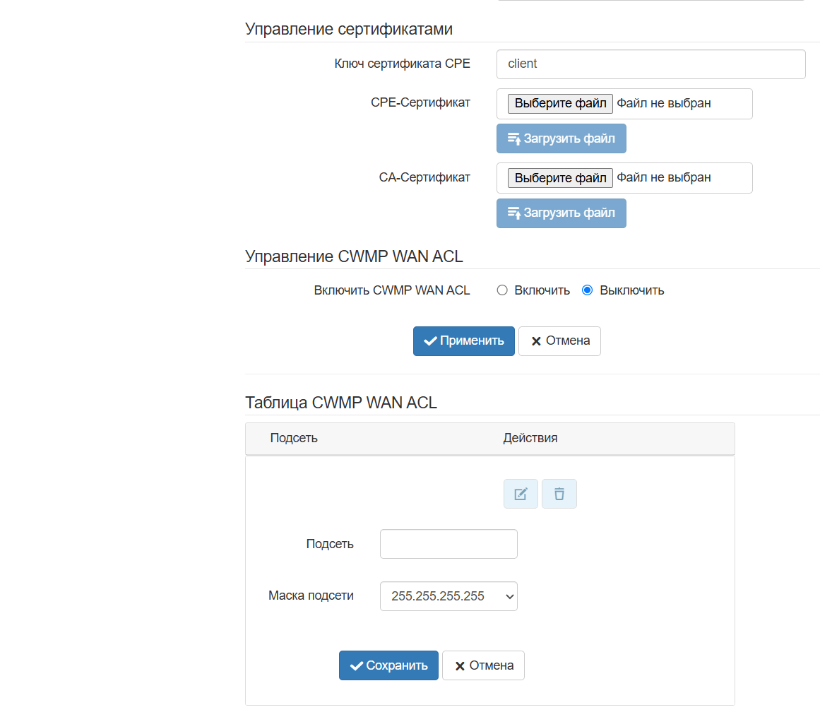 Включить CWMP WAN ACL — включить управление доступом к CWMP через WAN.