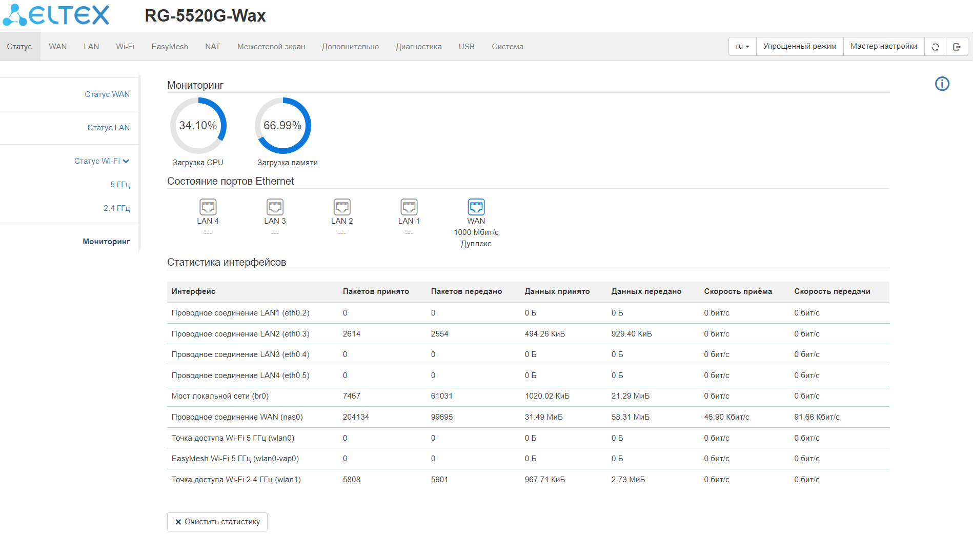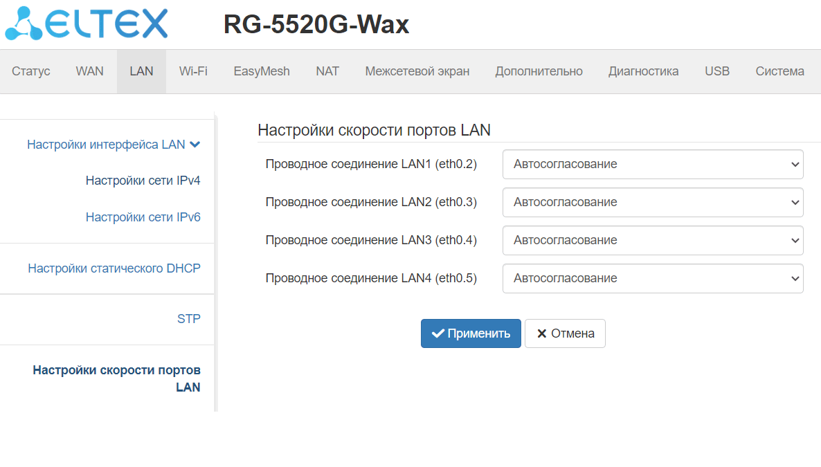 LAN: 4 порта Ethernet RJ-45 10/100/1000BASE-T;