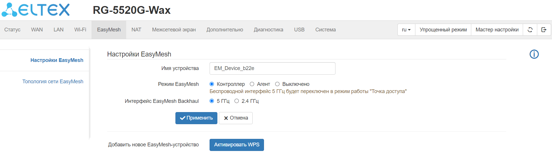 Поддержка EasyMesh;